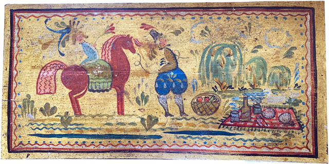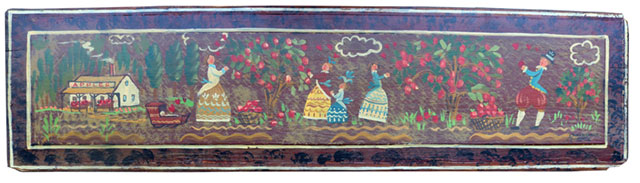 Peter Hunt born in 1896, was a well-known Cape Cod self-taught artist whose work was influenced from early Pennsylvania / German and French Provincial folk art. These were colorfulhappy designs of hearts, flowers, birds, fish, angels, maidens’ suitors and more.